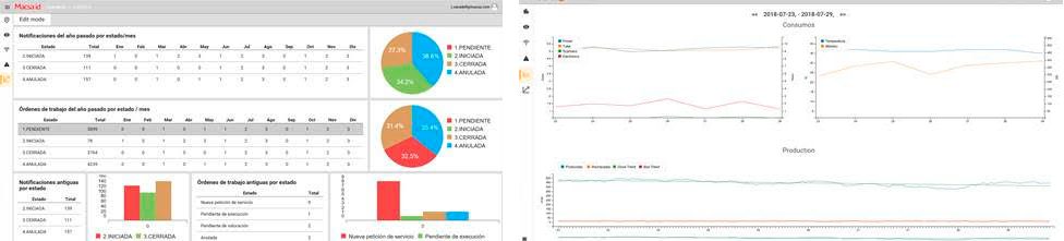 This Service provides us with a graphic representation of the measured parameters and data, through a fully configurable information representation panel, also visualizing the analysis information of critical parameters defined for predictive maintenance according to its definition of critical levels and warning, based on a relative difference prediction model.